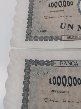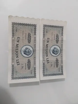 Billete de 1.000.000 Lei de Rumanía. - Denominación: Un Millón Lei. - Emisor: Banca Națională a României. - Serie y número: V.0646 / 0626.