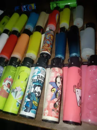 Conjunto de 30 mecheros Clipper con diferentes diseños. - Diseños coloridos y originales. - Mecheros reutilizables.