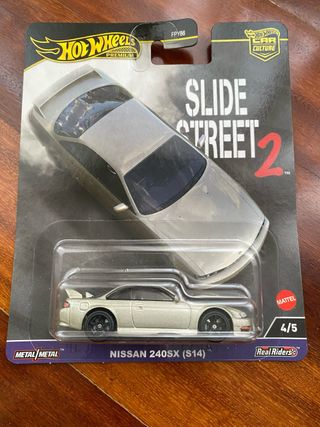 Coche de colección Hot Wheels Premium, parte de la serie Car Culture. - Modelo: Nissan 240SX (S14). - Serie: Slide Street 2. - Escala: 4/5. - Serie: Metal/Metal. - Ruedas: Real Riders. #nissan #premium #hotwheels