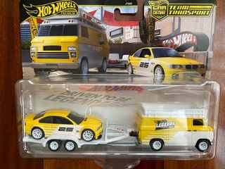 Set de Hot Wheels Premium de la serie Team Transport. - Incluye un coche y un transportador. - Diseño en color amarillo y blanco. - Coche con número 25 y diseño de rayas. - Transportador con logo Legends Tour.