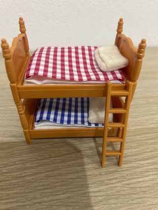 Juego de literas para casa de muñecas en miniatura. Incluye una escalera. - Diseño de dos camas. - Colores vivos.