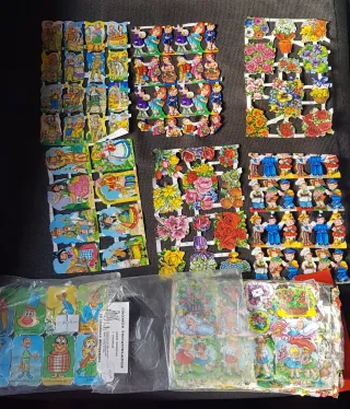 Lote de aproximadamente 60 láminas de cromos troquelados. Gran variedad de diseños. Algunaos con brillantina. - Variedad de diseños y personajes. - Ideal para coleccionistas y manualidades.