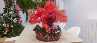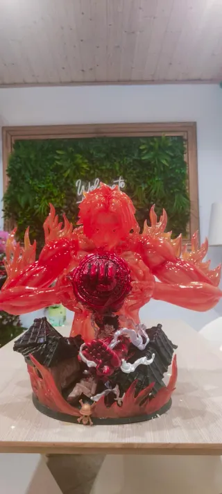 Figura de colección de Luffy y Ace de One Piece. Representa una escena dinámica con efectos de fuego y detalles. - Personajes: Monkey D. Luffy y Portgas D. Ace. - Diseño inspirado en el anime One Piece. - Base con temática de fuego y tejado japonés. - Figura de resina translúcida en tonos naranjas y rojos. Se ha sacado de la caja solo para la foto. Lo mejor es venta en persona por el tamaño.