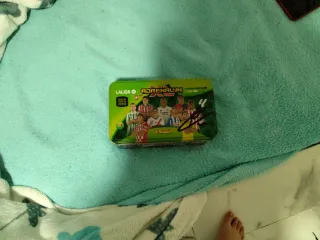 Caja de cartas Adrenalyn XL de LaLiga, edición 2024-25. Incluye una firma de un jugador español. - Caja metálica. - Contiene cartas de jugadores de LaLiga. - Firma de jugador español.