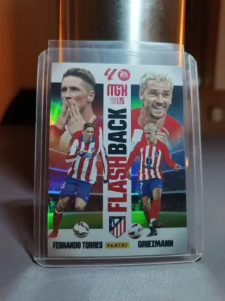 Tarjeta coleccionable de fútbol Flashback de Panini. - Presenta a Fernando Torres y Antoine Griezmann. - Edición 2024/25.