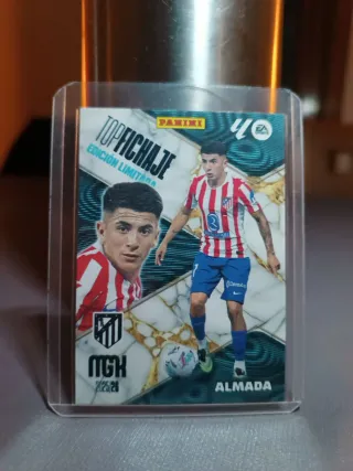 Carta coleccionable de Top Fichaje de Panini. Megacracks 25 26. - Edición limitada. - Jugador: Almada. - Temporada: 2025/26.