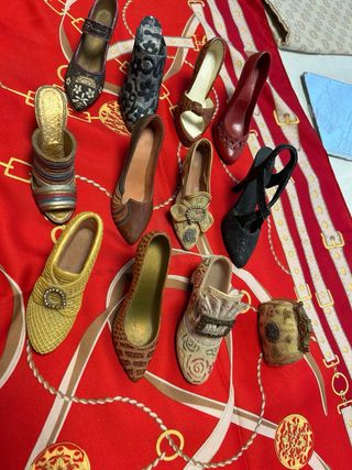Colección de miniaturas de zapatos y bolsos de la marca Wonder Shoe. Incluye varios modelos detallados. - Diseños variados de tacones y zapatos. - Pequeños bolsos a juego con algunos de los zapatos. - Ideal para coleccionistas o decoración.