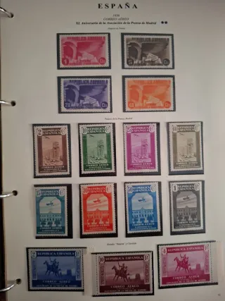 1936 Vuelo Manila-Madrid. 1938 Cifras de 1938 (45 céntimos). 1938 Cifras de 1938 (5, 10, 15, 20, 25, 30 céntimos). 1938S Alegoría de la República (40, 45, 50, 60 céntimos).