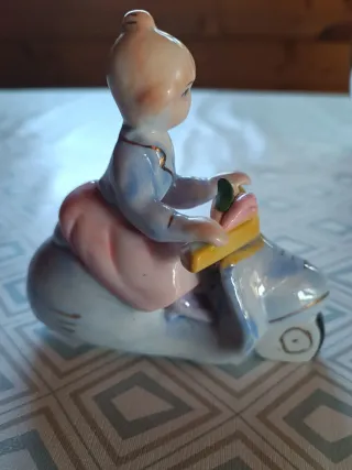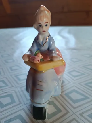 Figura de porcelana mujer en moto