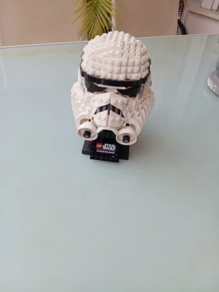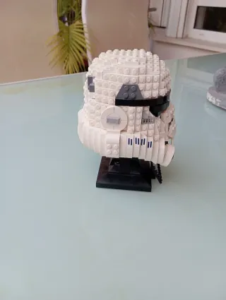 Réplica del icónico casco de Stormtrooper de Star Wars, construido con piezas de Lego. - Diseño detallado del casco. - Base expositora negra con logo de Star Wars.