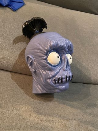 Vaso con diseño de Bob Beetlejuice (Bitelchus). - Color morado. - Detalle de costuras en la boca. - Pelo negro en la parte superior.