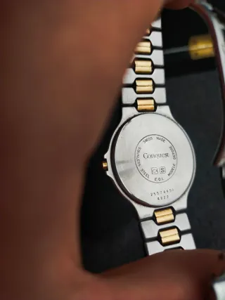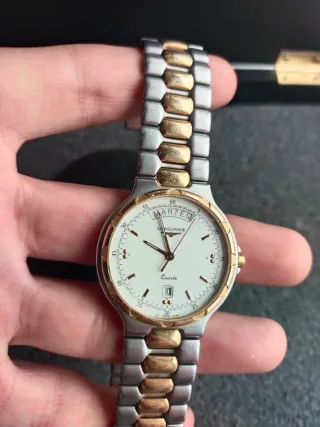 Elegante reloj Longines Conquest con un diseño bicolor que combina acero y oro. Un accesorio clásico y sofisticado. el reloj funciona perfectamente bien, la corona funciona 100%, ni un segundo adelantado ni otro atrasado. - Esfera blanca. - Indicador de día de la semana. - Correa de eslabones bicolor.