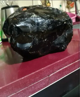 Pieza de obsidiana negra, una roca volcánica vítrea. Su peso es De 5 kilos ... Se le podría sacar mucho partido - Color negro intenso. - Superficie brillante y lisa. - Forma irregular y natural.