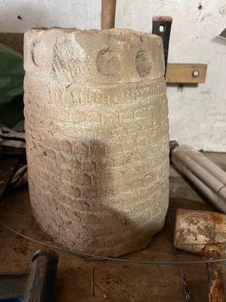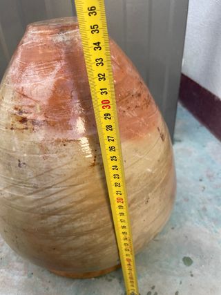 Pirula antigua de cerámica, ideal para usar como masetero o elemento decorativo. - Material: Cerámica. - Color: Tonos tierra y rojizos. - Diseño rústico.