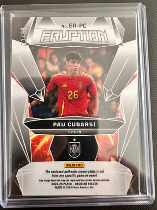 Tarjeta de colección de Pau Cubarsí de España, edición Eruption de Obsidian. Numerada /99 - Incluye un trozo de camiseta. - Diseño con detalles en rojo y negro. Si necesitas más información o más fotos, no dudes en contactar