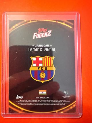 Carta coleccionable de Fugenz del jugador Lamine Yamal. - Diseño con temática de fútbol. - Incluye el nombre JAADUGAR y LAMINE YAMAL. Si necesitas más información o más fotos, no dudes en consultar.