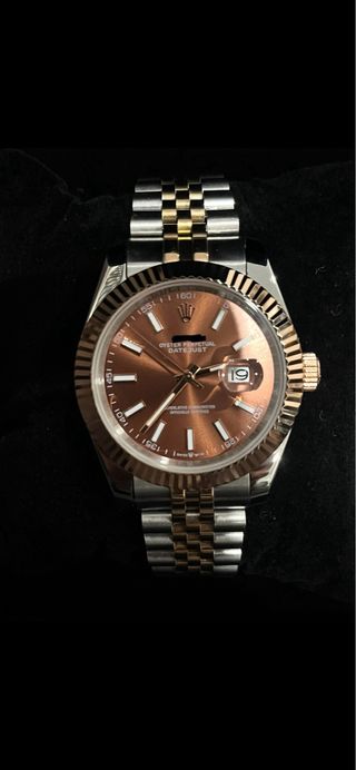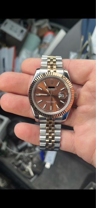 He tenido que tapar el nombre porque me tiran el anuncio. Si quieres más fotos te las paso por wasap. Reloj automático. - Acero 904L - Cristal de zafiro - Movimiento automático - Jubilee pulsera - Bicolor - Caja incluida - Oro rosa / acero - Cara chocolate Rolex, Audemars, Patek, Seiko Mod, Casio, Orient, Citizen, Lotus, Hublot, Festina, Seagull, Tudor, Termidor, Omega, Dateday, Dayjust, presidente. Submariner, GMT, Daytona.