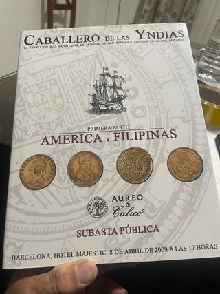 Catálogo de subasta pública de monedas de oro españolas. - Título: Caballero de las Yndias - Primera parte: América y Filipinas - Colección más importante de moneda de oro española reunida en manos privadas - Subasta pública organizada por Aureo & Calicó - Fecha: 8 de abril de 2009 - Lugar: Barcelona, Hotel Majestic