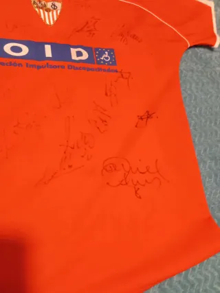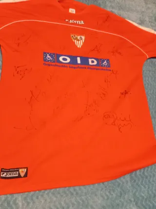 Camiseta de fútbol del Sevilla FC, firmada por todos los jugadores de la temporada 2012 - Color rojo - Logo de Joma. - Escudo del club. - Patrocinador OID.