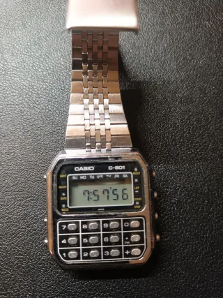 Reloj Casio C-801 con calculadora integrada, un modelo clásico de los años 80. - Diseño retro metálico. - Funciones de calculadora. - Pantalla digital. Funcionando perfectamente.