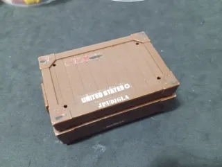 Baúl de armas de la línea Gi Joe. Un accesorio clásico para tus figuras. En buen estado general sin roturas. No incluye armas esta vacio. - Diseño inspirado en cajas de munición. - Color marrón. - Inscripciones UNITED STATES O JUNGLE y DANGER.