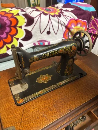 Preciosa máquina de coser Singer antigua, ideal para coleccionistas o como pieza decorativa. - Diseño clásico y ornamentado. - Base de madera robusta. - Detalles en metal. - Incluye pedal. - Marca: Singer
