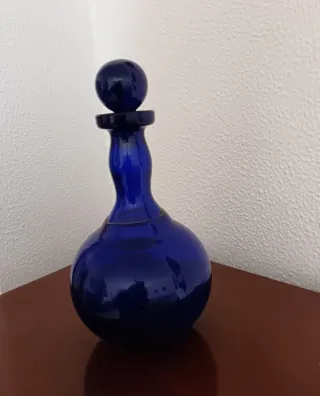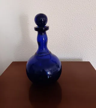 Elegante decantador de vidrio soplado en un vibrante color azul cobalto. Su diseño vintage añade un toque de distinción a cualquier espacio. - Material: Vidrio soplado. - Color: Azul cobalto. - Estilo: Vintage.