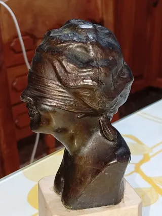 Busto escultura de la diosa de los ojos vendados fundida en bronce y firmada por su escultor P.UCELLO ITALIANO, años 40.