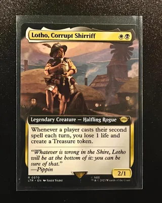 Carta rara Magic the gathering. *Lotho, Corrupt Shirrif - Edicion: The Lord of the Rings. - Condición: Near mint (NM). - Ideal para coleccionistas y jugadores. -Criatura legendaria.