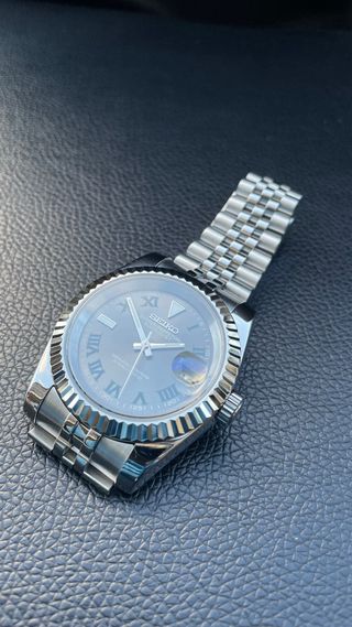 🌟 CUSTOM BUILD - ESTILO WIMB 🌟 Espectacular pieza montada a mano por Sanga Mods. Reloj exclusivo con acabados premium y maquinaria japonesa de alta fiabilidad. 💎 DETALLES: • MOVIMIENTO: Automático NH35 (maquinaria Seiko original). • CAJA: Acero 316L de 39mm. • DIAL: Gris rayos de sol con números romanos. • CRISTAL: Zafiro (anti-rayas). • BRAZALETE: Jubilee sólido con cierre ajustable. • LUME: Brillo azul intenso. ✅ Nuevo a estrenar. ✅ Ajuste de brazalete gratis en mano (Gipuzkoa). Reloj artesanal, único en su categoría. ¡Envío rápido! 🚀 Soporte técnico post-venta. *Mod custom aftermarket. No oficial Seiko.*