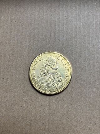 Moneda de 8 escudos de Fernando VII. - Diseño con escudo y corona. - Inscripción FERDINANDVS VII DEI GRATIA y HISPAN ET IND REG. - Año visible: 1813.