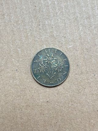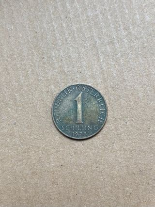 Moneda de 1 Schilling de Austria del año 1972. - Diseño con el número 1 en el centro. - Inscripción REPUBLIK ÖSTERREICH y SCHILLING 1972.