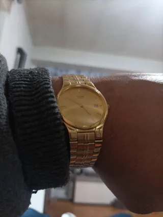Pulsa seiko y viene siendo la misma marca está impoluto tiene caja y papeles Elegante reloj de pulsera con brazalete dorado. - Esfera dorada. - Brazalete metálico dorado.