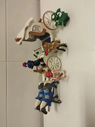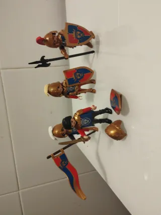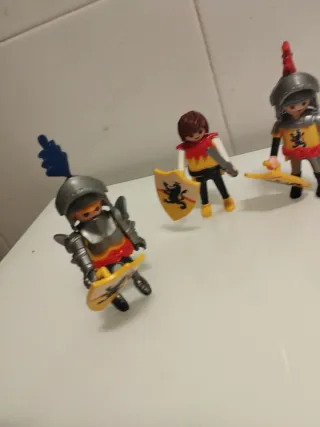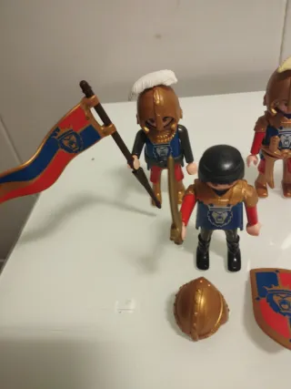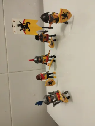 Conjunto de figuras de Playmobil de caballeros medievales. - Incluye varios caballeros y caballos. - Accesorios como escudos y espadas.