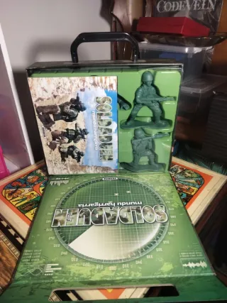 Maletín de juego Soldados de Susaeta, con temática mundu harrigarria. Incluye figuras de soldados. - Maletín con asa. - Figuras de soldados de plástico verde. - Diseño de mundu harrigarria en la caja.