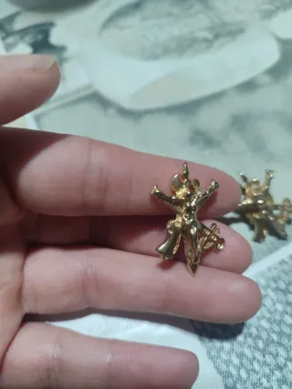 Pin con diseño del Cristo de la Legión. - Fabricado en metal dorado. -2,2x2 cm -10€ los dos A uno le falta el enganche de atrás
