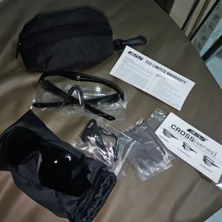 Gafas tácticas ESS Crosshair con lentes negras y montura transparente. - Incluye funda de transporte negra. - Incluye bolsa de tela negra. - Incluye paño de limpieza. - Incluye correa para el cuello. - Incluye manual de garantía ESS. - Incluye folleto de la serie CROSS[series]. NUEVAS SU PRECIO 100€ ESTAS ESTAN A ESTRENAR TANBN PIDO 50€