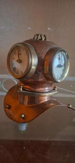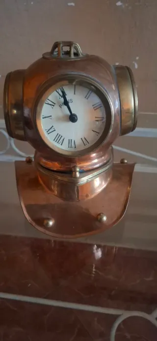 Original reloj decorativo con diseño de escafandra de buzo antigua. - Material: Cobre y latón. - Esfera con números romanos.