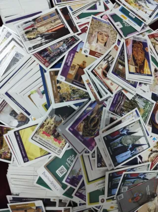 Taco de medio metro de cartas repetidas Vendo a 0'25€ la unidad. Pasame tus faltas de los años 2023, 2024 o 2025 y yo te confirmo la disponibilidad. PREGUNTA SIN COMPROMISO HAY POSIBILIDAD DE COMPRAR EL TACO ENTERO. semana santa, Sevilla, feria de Sevilla, antigüedades, cromos, holy cards, pepe pinreles, sevillana, estampitas, cofrade, virgen, cristo, imagen,