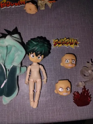 Figura de acción del personaje Deku de My Hero Academia. Incluye accesorios para personalizar. - Figura articulada. - Cabezas intercambiables. - Ropa de tela. - Efectos de poder.