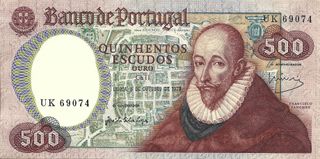 Billete de 500 escudos de Portugal, emitido en 1979. Presenta un retrato de Francisco Sanches. - Emisión: 4 de Octubre de 1979. Km177. Francisco Sanches. UF 69074.A (5 €) - Denominación: 500 Escudos - Banco de Portugal - Firma del Gobernador: José da Silva Lopes - Firma del Administrador: Francisco Sanches