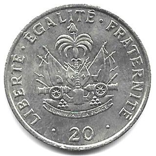 Moneda de 20 centavos de Haití del año 1991. km152 - Diseño conmemorativo de la República de Haití.