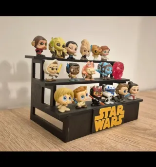Expositor negro para figuras de Star Wars. Ideal para coleccionistas. - Diseño de tres niveles. - Incluye el logo Star Wars en la base. -no incluye las figuras