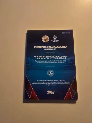 Carta de coleccionista de Frank Rijkaard, ganador de la Champions League, de la colección Topps Match Attax 2025/26. - Tarjeta de jugador de fútbol. - Incluye una réplica de medalla. - Edición especial UCL Medal Winner Card.