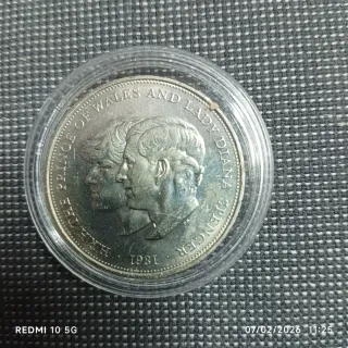 Moneda conmemorativa de la boda del Príncipe Carlos y Lady Di. - Diseño con los perfiles de ambos. - Inscripción THE PRINCE OF WALES AND LADY DIANA SPENCER. - Año 1981 visible.