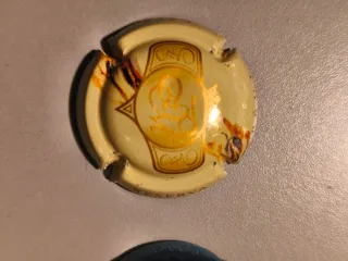Placa o cápsule de champagne de la marca Clicquot. - Color dorado. - Diseño con ancla y texto. - Presenta signos de desgaste.