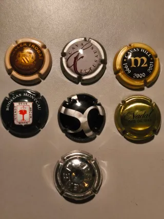 Conjunto de 7 placas de cava de diferentes bodegas y diseños. Piezas ideales para coleccionistas. - Placa Celler Trobat Brut Reserva. - Placa Cava Tutusaus - Placa Cavas Hill - Placa Bodegas Montcau - Placa Castellroig. - Placa Nadal - Placa Freixenet