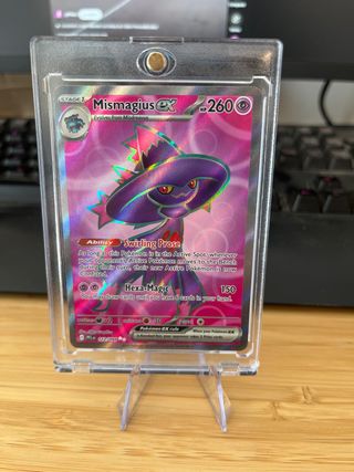 Carta Pokémon Mismagius EX de la expansión Scarlet & Violet. - Número de carta: 112/094. - Tipo: EX. - Habilidad: Swirling Prose. - Ataque: Hexa-Magic.