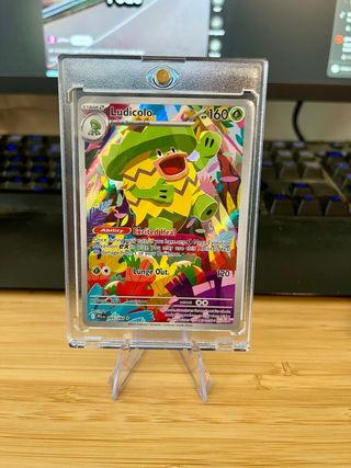 Carta Pokémon de Ludicolo, edición en inglés. - Etapa 2. - HP 160. - Habilidad: Excited Heal. - Ataque: Lunge Out. - Código: 095/094.