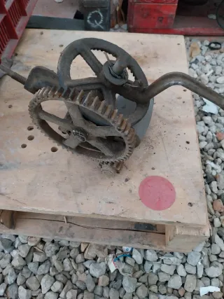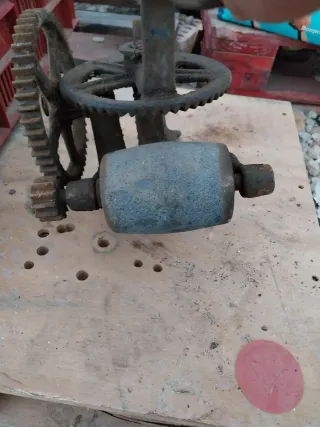 Afilador manual de estilo antiguo, con un diseño robusto y mecanismos de engranaje visibles. - Construcción de hierro fundido. - Mecanismo de manivela y engranajes. - Base con sistema de sujeción. - Ideal para coleccionistas o decoración vintage.